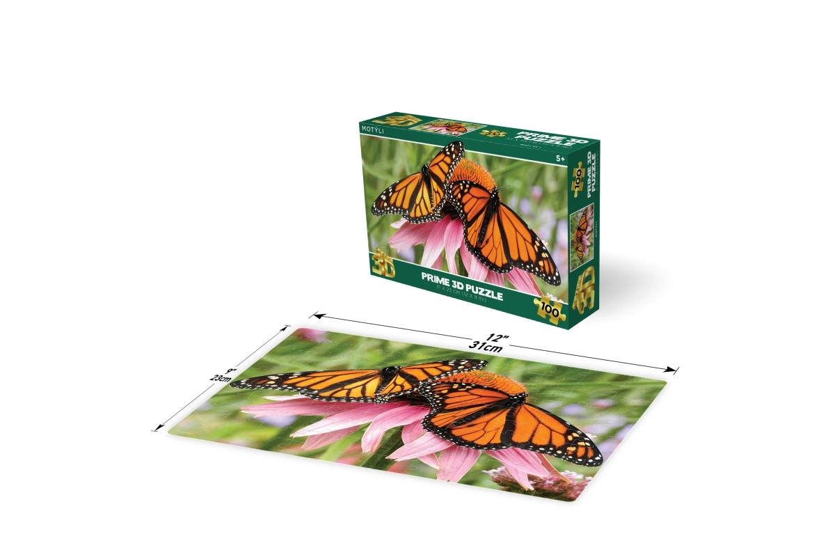 Te puzzle 3D z pięknymi motylami monarchy zapewniają zachwycający efekt wizualny dzięki technologii lentikularnej, która podczas poruszania tworzy realistyczne wrażenie głębi. Z 100 elementami świetnie nadają się dla początkujących i średnio zaawansowanych, oferując przyjemne wyzwanie i zabawę.