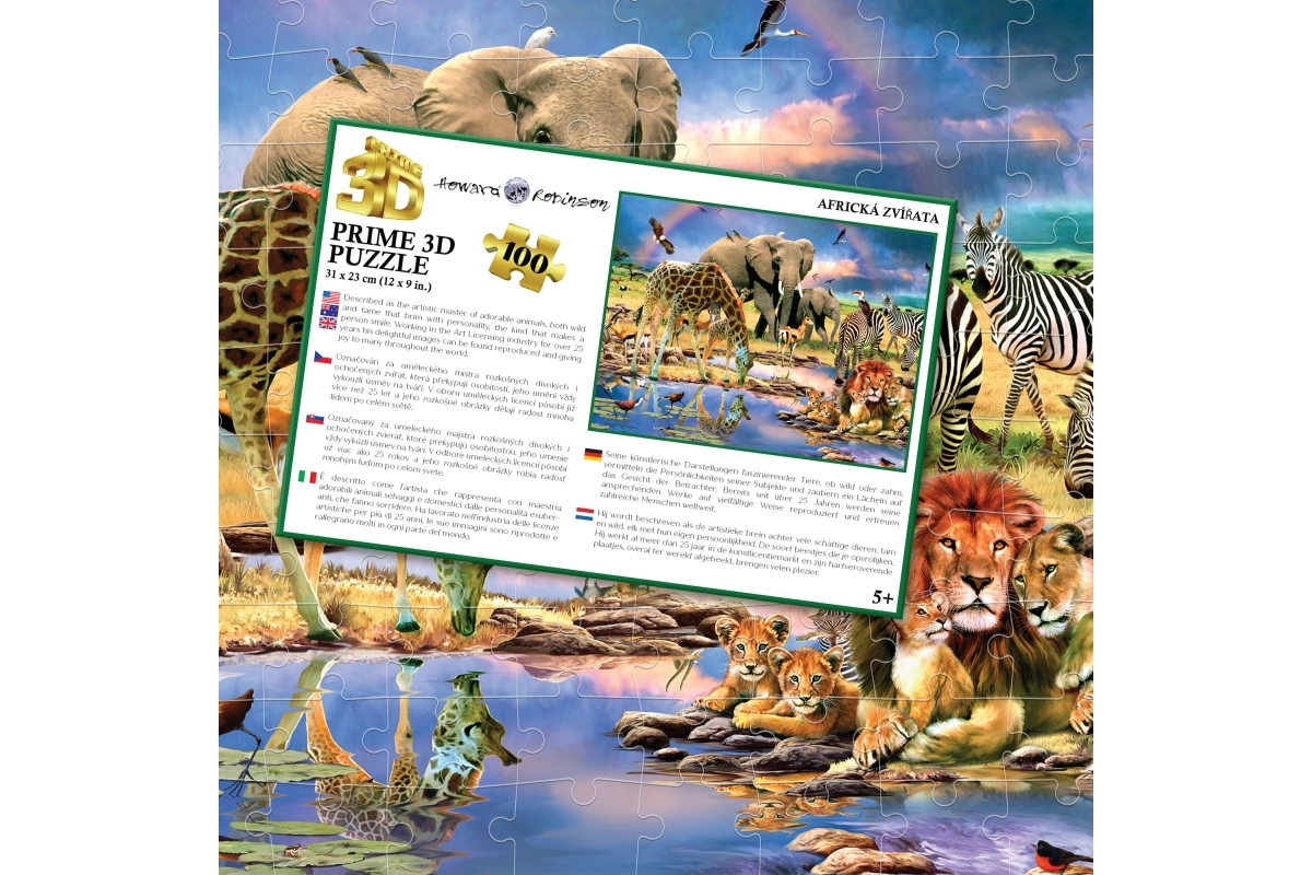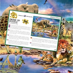 Odkryj zabawę i naukę z tym puzzlami 3D z motywem afrykańskich zwierząt. Zestaw zawiera 100 elementów, które po ułożeniu tworzą imponujący obraz o wymiarach 31 × 23 cm. Idealne dla dzieci od 5 lat, świetnie rozwija motorykę małą, cierpliwość i wyobraźnię przestrzenną.