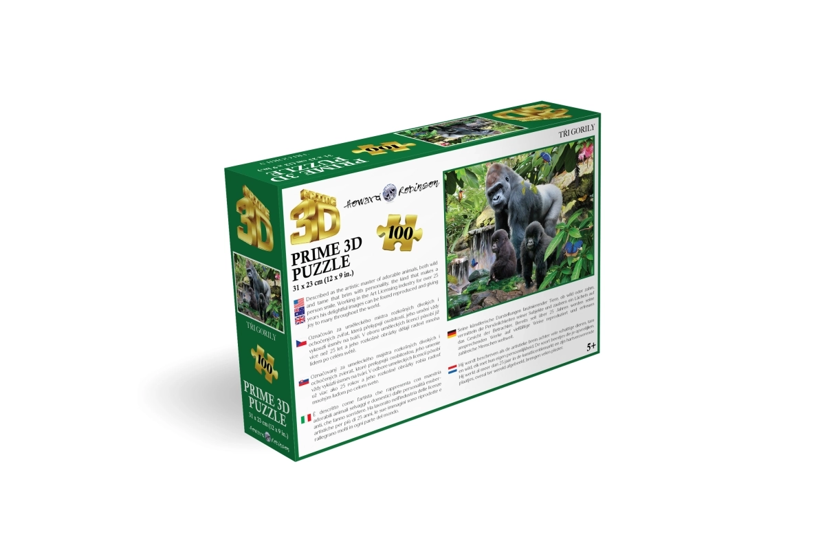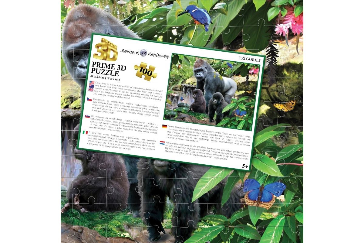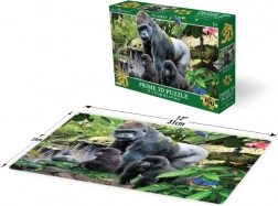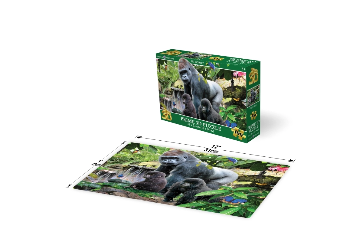Ciesz się zabawą z realistycznymi puzzlami 3D z motywem goryli! Układanka ze 100 elementami oferuje imponujący lentikularny efekt 3D, gotowy obraz ma wymiary 31 × 23 cm i jest idealny dla dzieci od 5 lat.