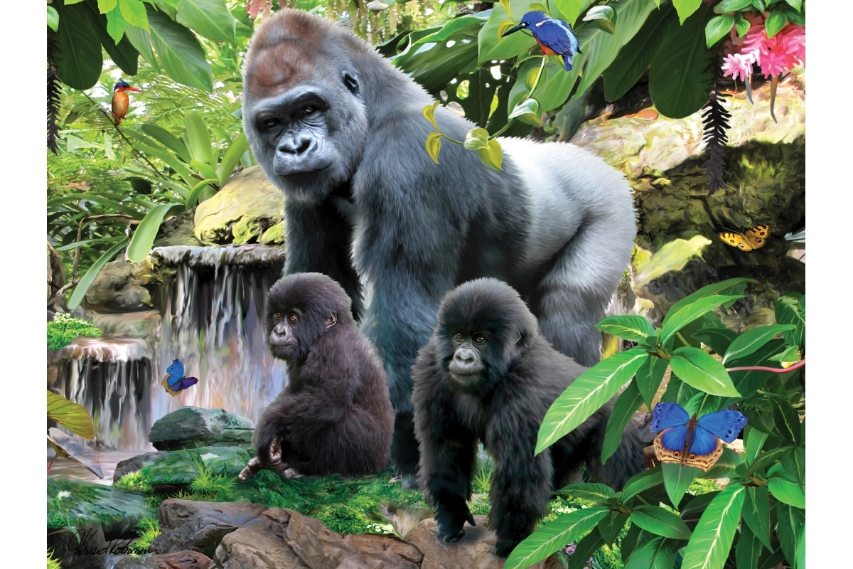 Odkryj świat dzikiej przyrody z fascynującymi puzzlami 3D z rodziną goryli. Dzięki efektowi lentikularnemu obraz „wychodzi” z płaszczyzny, oferując wciągające wrażenia wizualne, które ucieszą dzieci i dorosłych. Gotowy format 31 × 23 cm świetnie sprawdzi się jako dekoracja do pokoju dziecięcego.