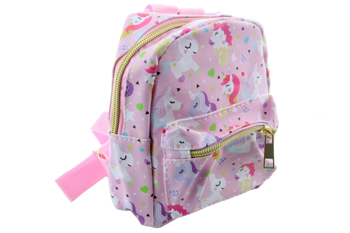 Stylowy mini plecaczek z magicznym motywem jednorożców jest idealny na drobiazgi dla dzieci i dorosłych. W całości pokryty wysokiej jakości ekoskórą, ma dwie kieszenie na zamek dla lepszej organizacji oraz kompaktowe wymiary 16 × 18 × 5 cm, dzięki którym wygodnie nosi się go na co dzień.