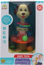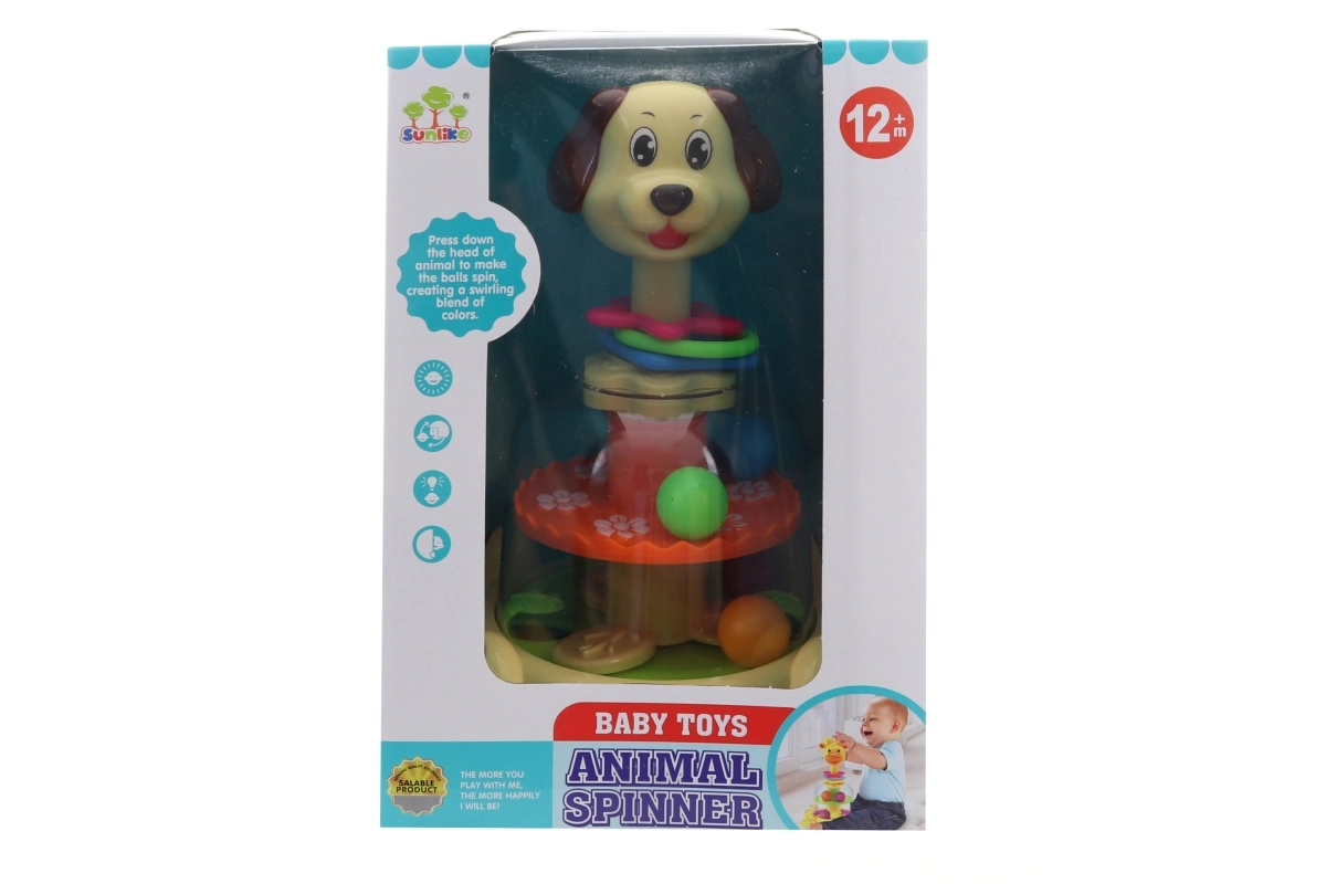 Ten uroczy bączek z motywem pieska ucieszy każdego małego odkrywcę. Proste naciśnięcie główki aktywuje mechanizm i w środku zaczynają wirować kolorowe kulki. Zabawka wspiera koordynację ręka–oko i uczy dziecko zależności przyczynowo-skutkowych.