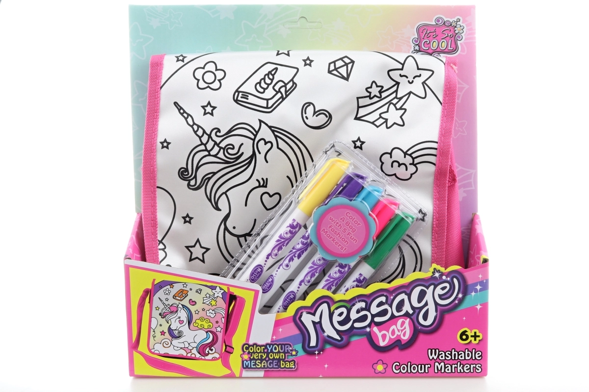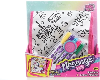 Odkryj magiczną torebkę do kolorowania z motywem jednorożca, która zapewni dzieciom godziny kreatywnej zabawy. Dzięki praktycznemu zapięciu na rzep i różowemu paskowi torebka wygodnie się nosi i łatwo otwiera. W opakowaniu znajdziesz wszystko, czego potrzeba – samą torebkę oraz 5 mazaków, aby od razu zacząć tworzyć.