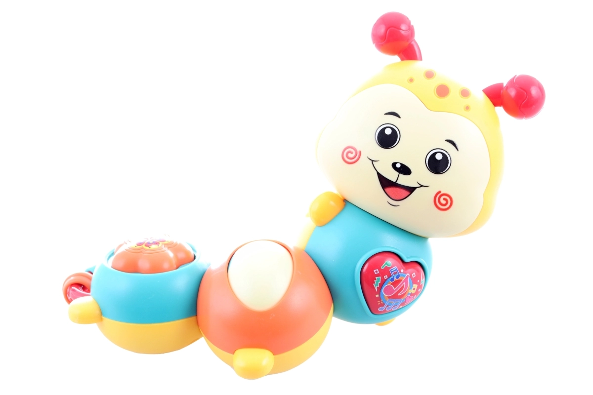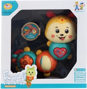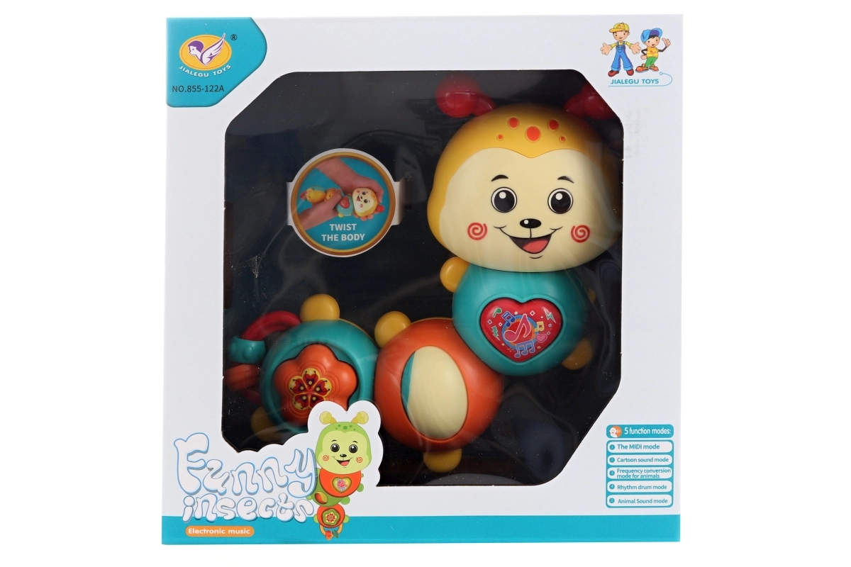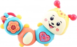 Ta kolorowa gąsienica zachwyca dzieci wesołym wyglądem, łatwym chwytaniem i funkcjami interaktywnymi. Po włożeniu baterii odtwarza melodie i dźwięki, które zachęcają do odkrywania i ćwiczą percepcję słuchową. Obrotowe segmenty korpusu wspierają małą motorykę i koordynację rąk.