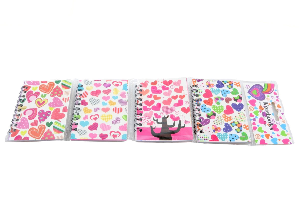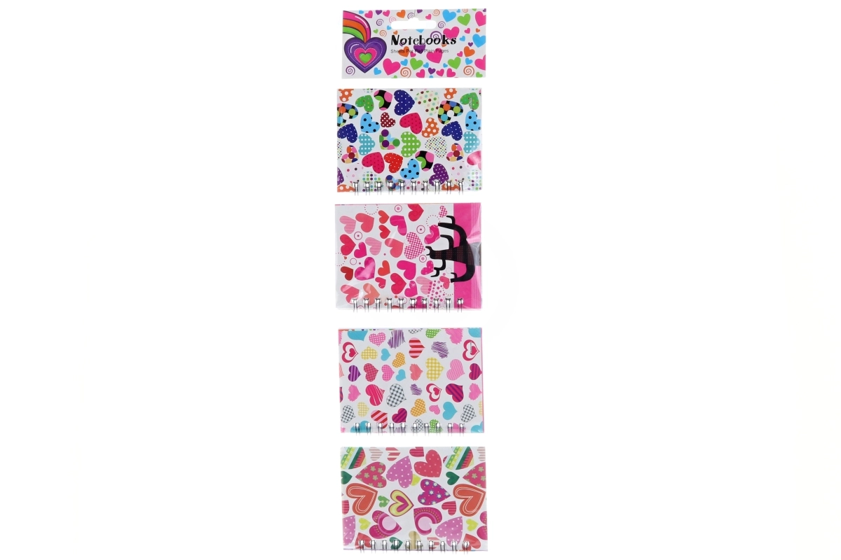 Uroczy zestaw czterech kieszonkowych notesów z motywami serduszek na Twoje pomysły, notatki i codzienne planowanie. Każdy notes ma kompaktowe wymiary 7,5 × 10,5 cm, praktyczne spiralne bindowanie oraz 28 kolorowych, liniowanych kartek. Idealne do torebki, do szkoły i w podróż – stylowe wzory w jednym opakowaniu.