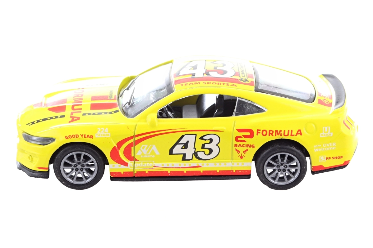 Przeżyj emocjonujące wyścigi z metalowym autkiem z napędem pull-back. Wystarczy naciągnąć, puścić i obserwować, jak rusza do przodu. Realistyczne detale i sportowy design pobudzają wyobraźnię i kreatywną zabawę w domu i w podróży.