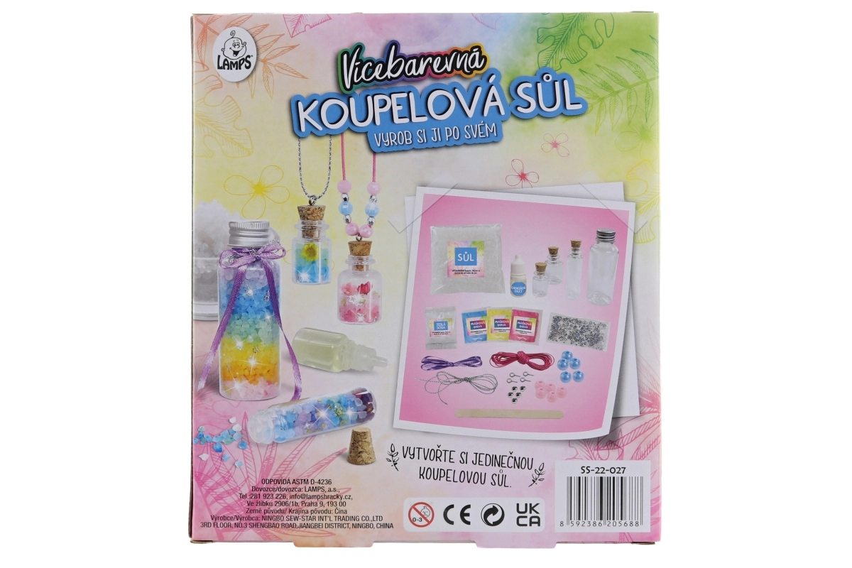 Z tym zabawnym zestawem z łatwością stworzysz wyjątkową sól do kąpieli według własnej wyobraźni. Łącz kolory, zapachy i dekoracje, aby przygotować oryginalne prezenty lub relaksacyjne mieszanki do kąpieli. Prosta instrukcja i wszystkie akcesoria w zestawie gwarantują, że każdy może rozpocząć tworzenie.