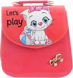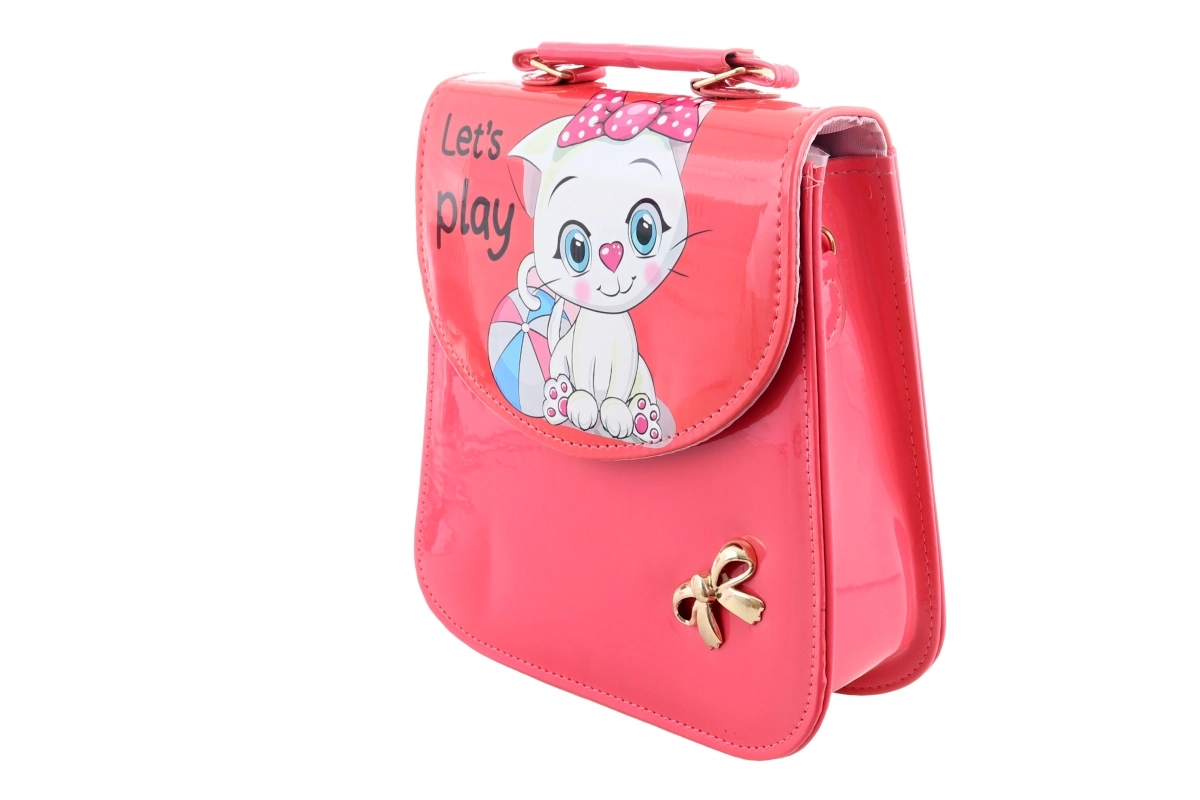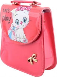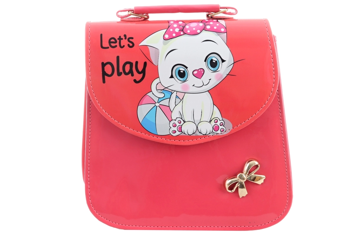 Atrakcyjna różowa błyszcząca powierzchnia i uroczy motyw kotka „Let’s play” przyciąga uwagę od pierwszego spojrzenia i dodaje stylizacji figlarnego charakteru.