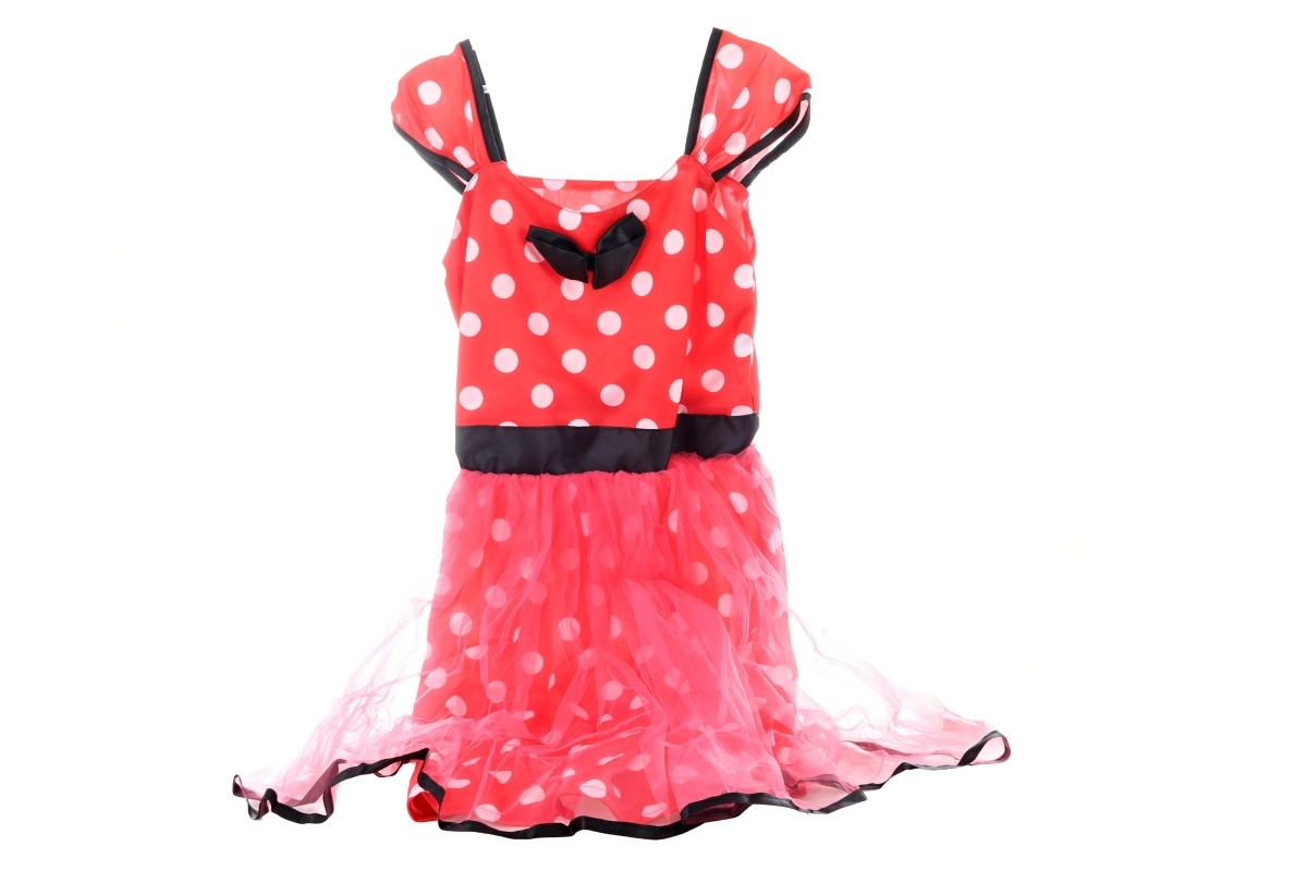 Urocza dziewczęca sukienka w stylu Minnie z lekkiego materiału z marszczoną tiulową spódnicą, kropkowanym wzorem i kokardką jest idealna na karnawał, przyjęcia oraz domowe przebieranki. Dzięki elastycznej talii wygodnie dopasowuje się do sylwetki i zapewnia komfort oraz radość z zabawy w odgrywanie ról dzieciom w wieku 3+.