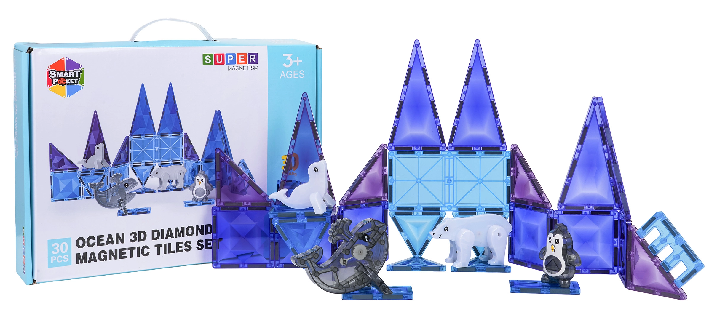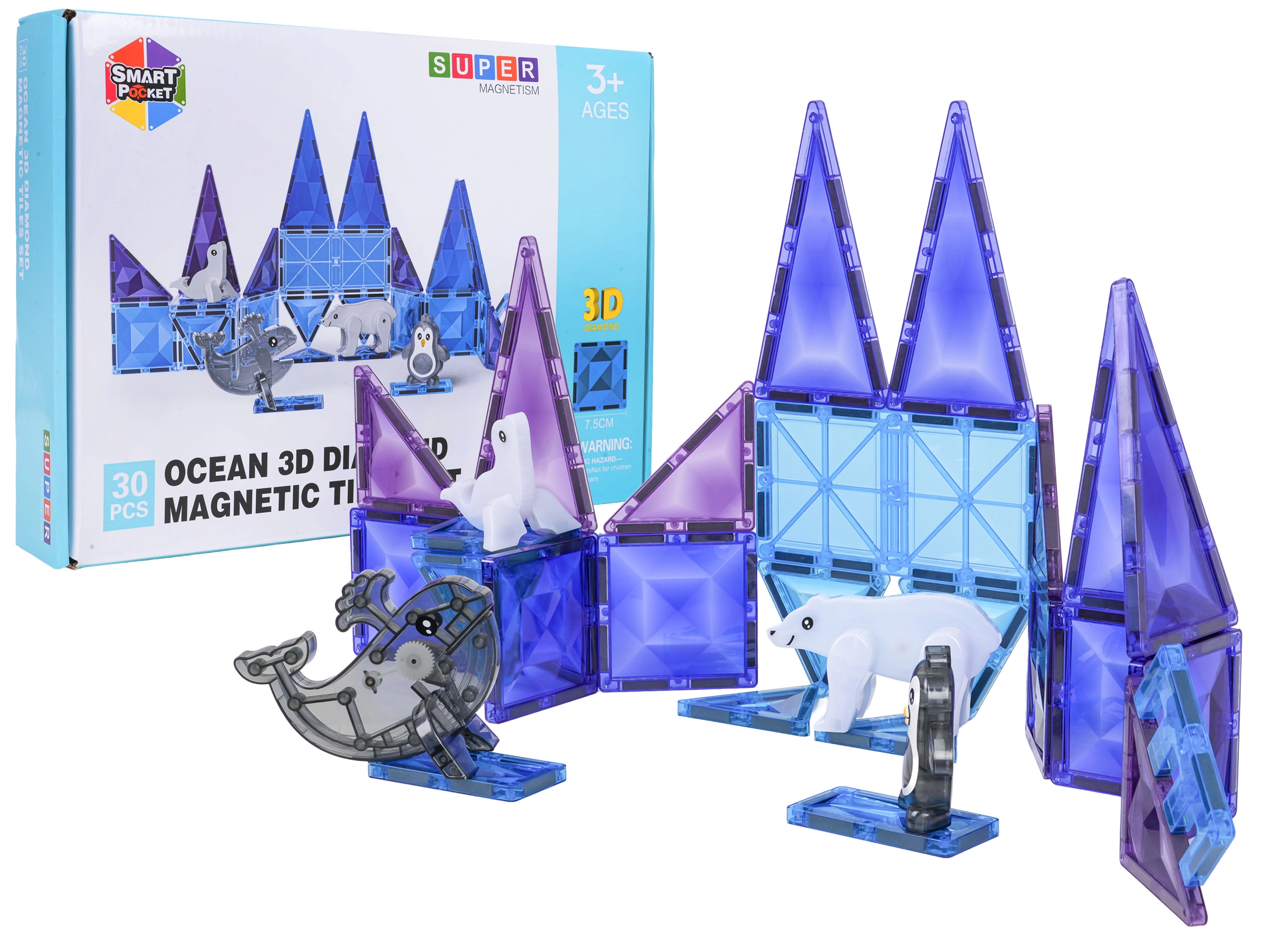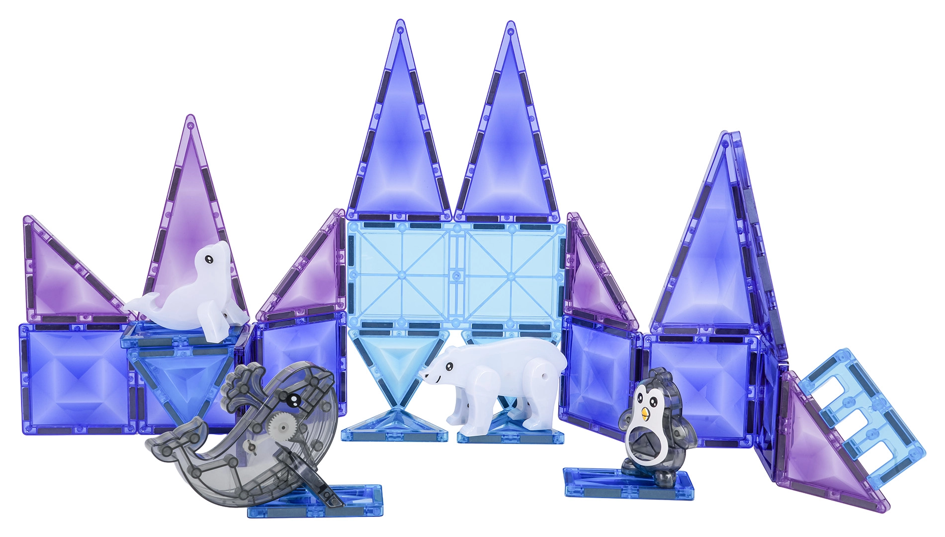 Odkryj zimowy świat tworzenia z magnetyczną układanką Ice Snow! Zestaw zawiera 30 elementów w lodowych odcieniach błękitu i fioletu oraz figurki arktycznych zwierząt. Elementy z wytrzymałego plastiku dzięki silnym magnesom neodymowym łatwo i stabilnie się łączą, dzięki czemu dzieci mogą tworzyć stabilne konstrukcje 3D i rozwijać kreatywność, cierpliwość i koncentrację.