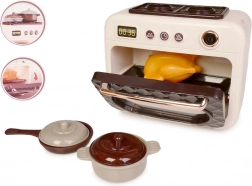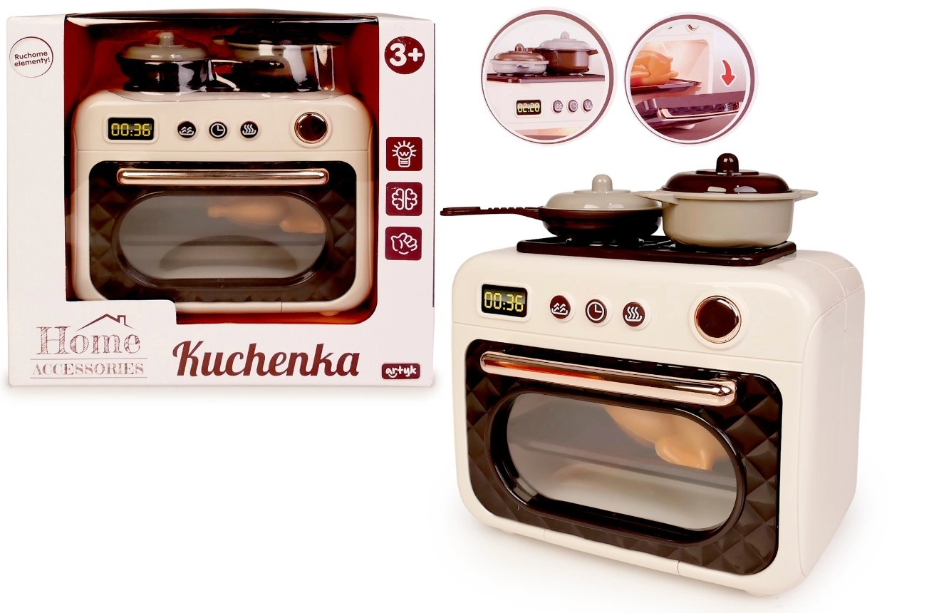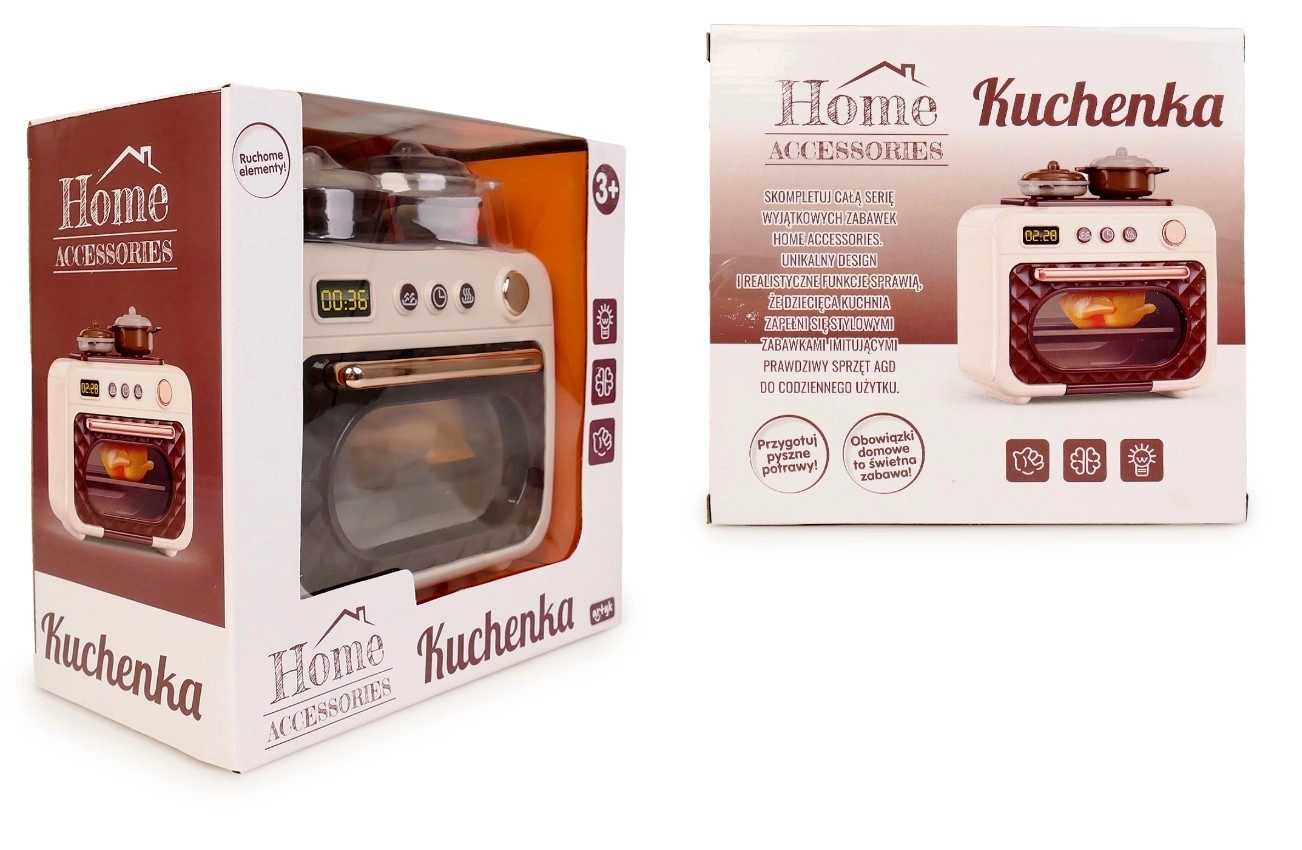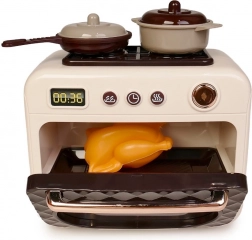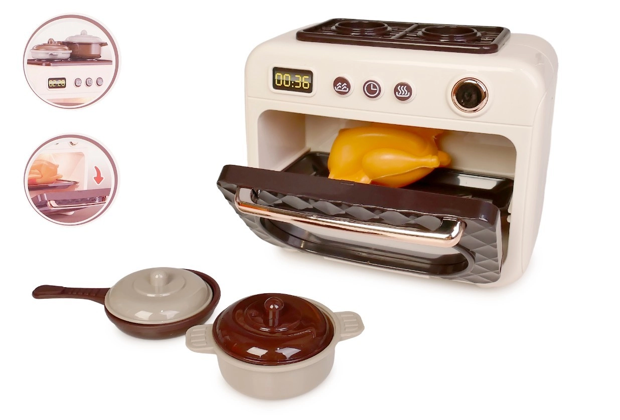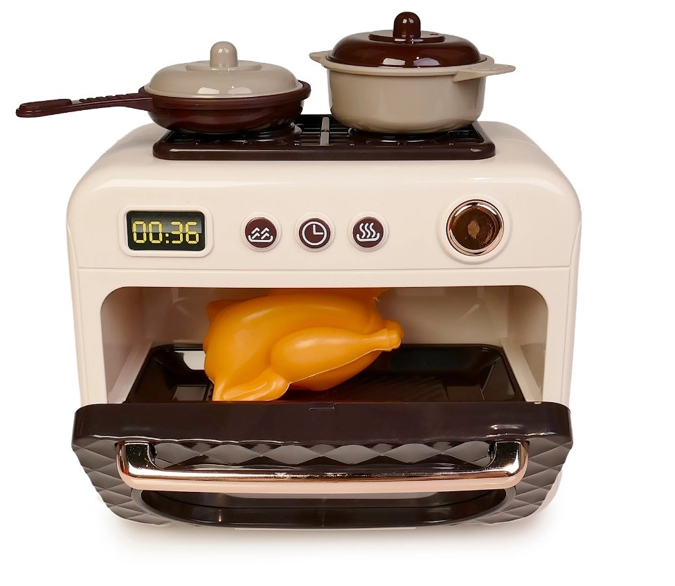 Zabawny dziecięcy piekarnik, który po naciśnięciu przycisku odtwarza melodię i rozświetla wnętrze piekarnika. Świetna zabawka dla małych kucharzy, wspiera kreatywną zabawę i rozwój wyobraźni.