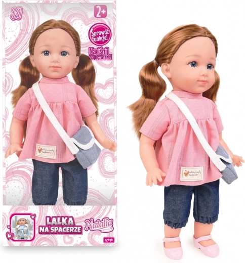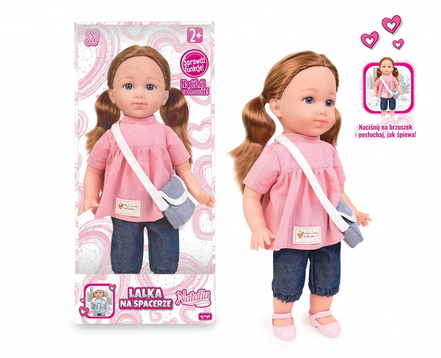 Lalka Natalia w różowej tunice i modnych spodniach oferuje dzieciom mnóstwo zabawy i nauki. Po naciśnięciu brzuszka wypowiada polskie frazy i śpiewa dwie piosenki, co wspiera percepcję słuchową oraz naturalne naśladowanie dorosłych. Wysoka jakość wykonania, delikatne rysy twarzy i ruchome kończyny czynią z niej świetną towarzyszkę na co dzień.