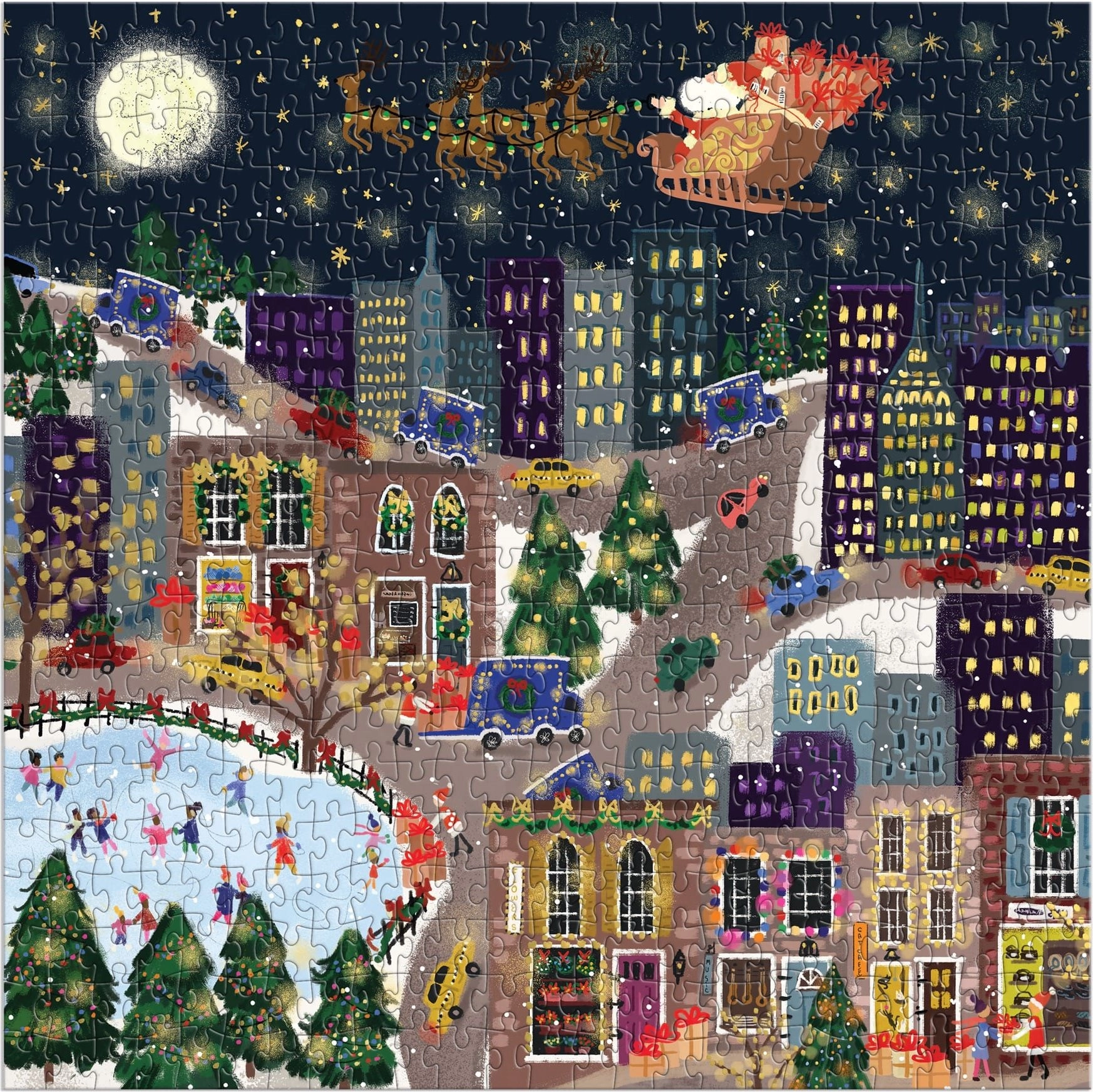 Odkryj radość układania z eleganckimi, kwadratowymi puzzlami GALISON. Motyw Podarunkowe miasteczko z metalicznymi efektami doda układaniu charakteru, a po zakończeniu stworzy stylową dekorację. W opakowaniu znajduje się także wzór motywu ułatwiający układanie oraz obraz o wymiarach 50,8 × 50,8 cm.