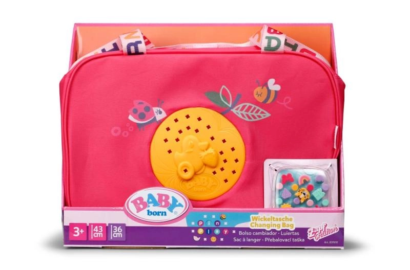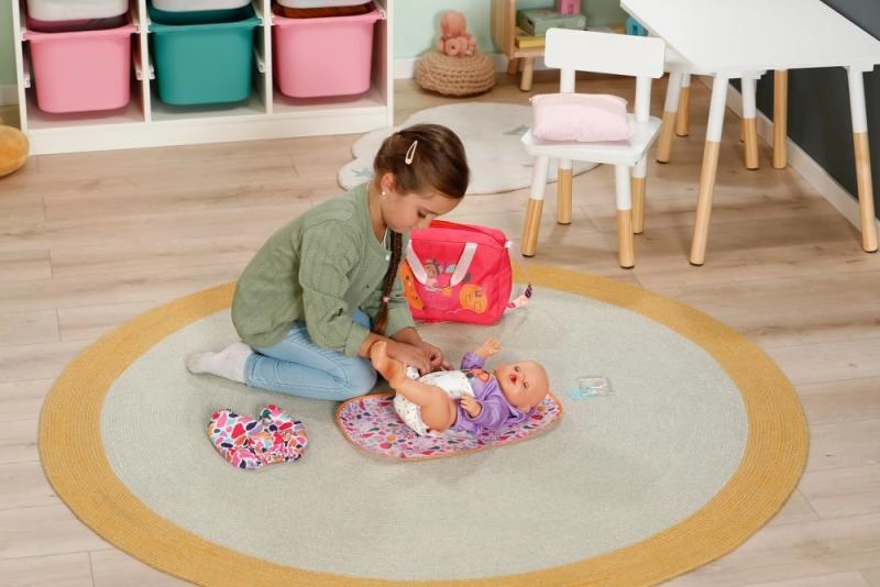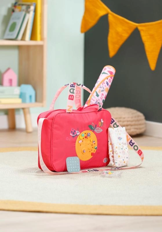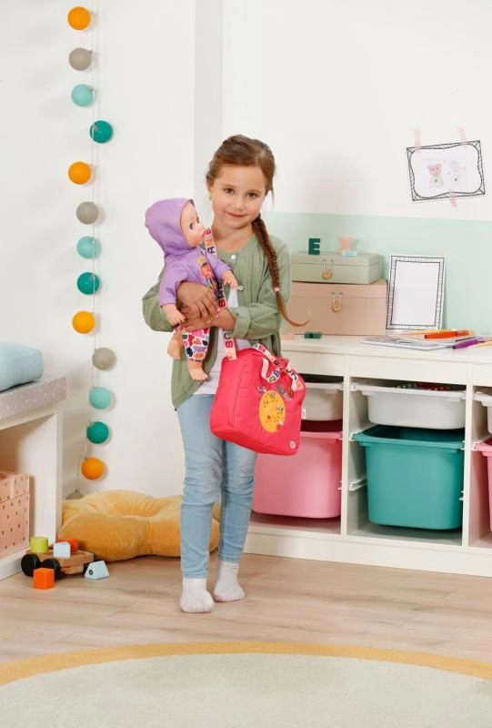 Torba do przewijania BABY born jest lekka, wytrzymała i zaprojektowana tak, aby wszystkie niezbędne akcesoria do opieki nad lalką były pod ręką i dobrze zorganizowane. Torba ma zamek, praktyczne kieszenie oraz wygodny pasek na ramię. Kolorowe motywy i radosne detale zamieniają każdy spacer w stylową przygodę.