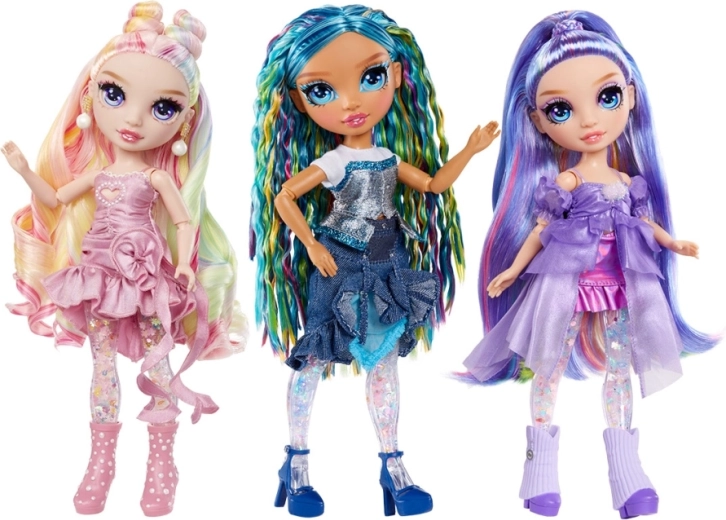 W zestawie znajduje się także uroczy magiczny pupil ze skrzydełkami i rogiem, grzebień oraz kompletny strój. Dzieci mogą kolekcjonować postacie z tej serii – Iris (Tęczowa), Bella (Różowa), Skyler (Niebieska) i Violet (Fioletowa) – oraz inspirować się nowymi odcinkami serialu Rainbow High na YouTube lub Netflixie.
