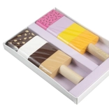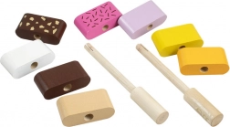 Podaruj dzieciom kreatywną zabawę z drewnianymi układanymi lodami DETOA. Każdy element ma gładkie, przyjemne krawędzie i kolorowe segmenty, które łatwo nawleka się na drewniane patyczki. Mali cukiernicy poćwiczą paluszki, nauczą się rozróżniać kolory i stworzą własne kolorowe kompozycje.