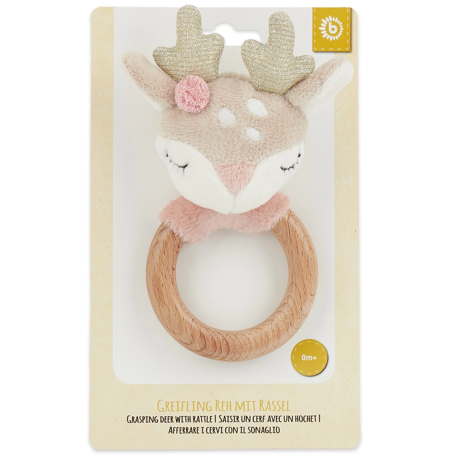 Bieco grzechotka i gryzak z drewnianym kółkiem – jelonek Ella