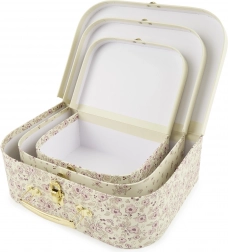 Ten elegancki zestaw kuferków świetnie sprawdzi się do organizacji dziecięcych rzeczy i jako miły dodatek do wystroju wnętrza. Lekka, a zarazem mocna tekturowa konstrukcja z metalowym okuciem zapewnia trwałość i wygodne przenoszenie. Dzięki różnym rozmiarom dzieci łatwo wybiorą ten właściwy na wycieczkę, do przedszkola lub do babci.