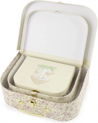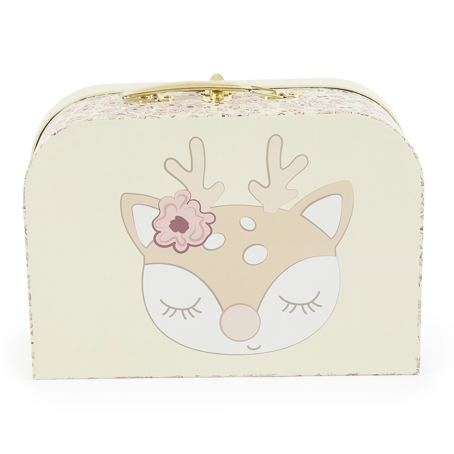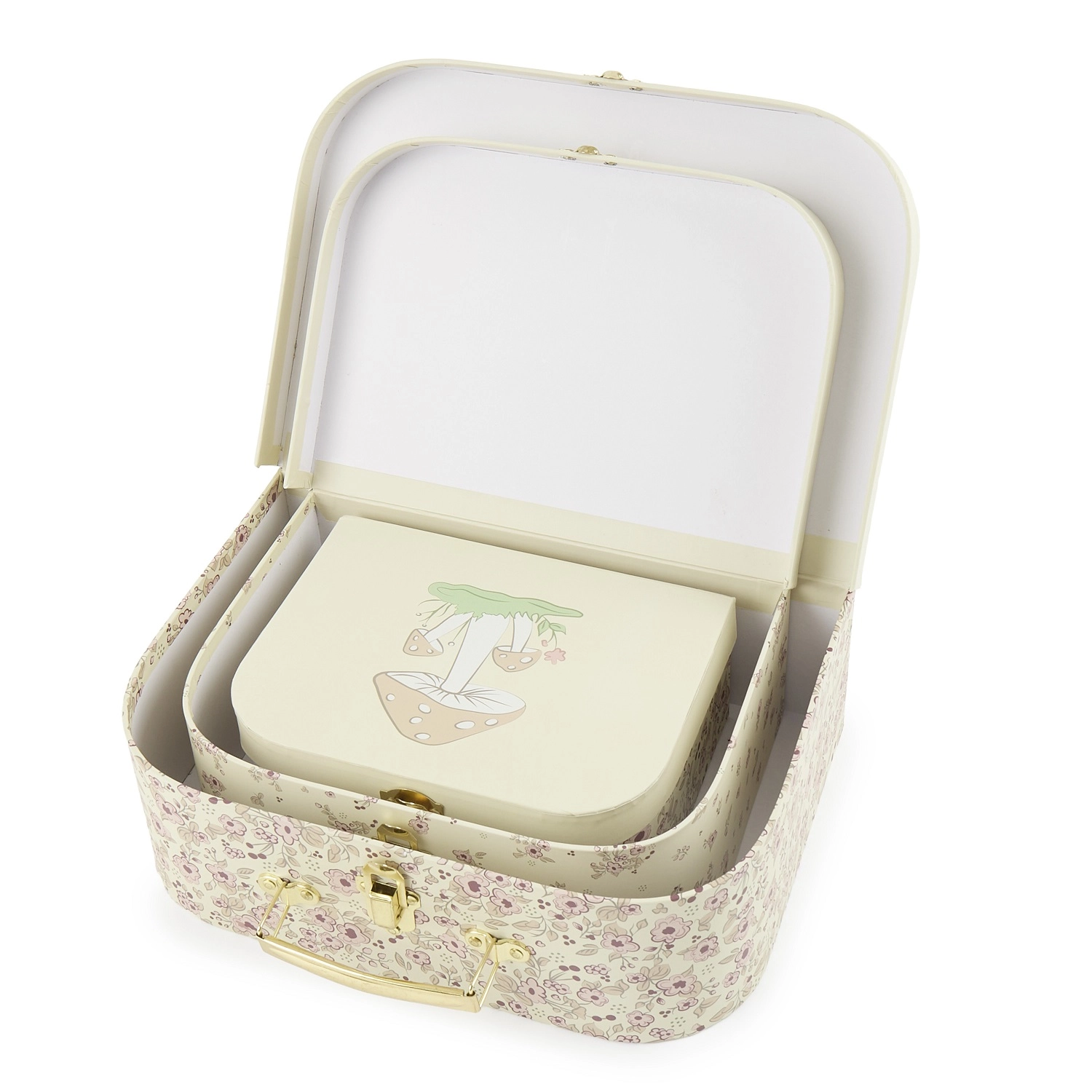 Stylowy zestaw trzech tekturowych kuferków rozświetli dziecięcy pokój i podróże. Łączy w sobie uroczy motyw sarenki Ella, vintage kwiatowy wzór, solidny metalowy zatrzask oraz wygodną rączkę. Dzięki wkładanemu (nesting) designowi kuferki są poręczne, lekkie i idealne do przechowywania skarbów, zabawek i drobiazgów.