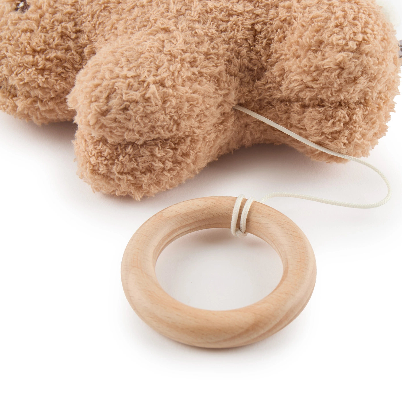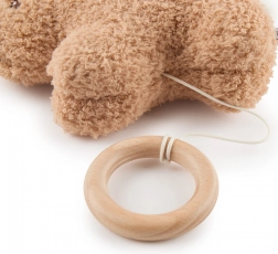 Przyjemny plusz i drewniane kółko dla małych rączek