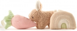 • Królik z grzechotką i szeleszczącymi uszkami – zachęca do chwytania i potrząsania.