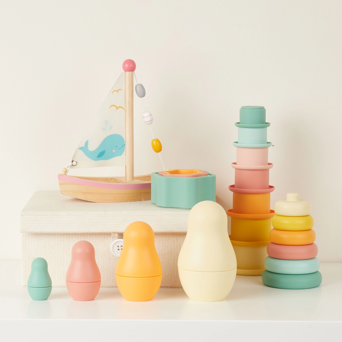Odkryj nowoczesne ujęcie klasycznej zabawki: silikonowa składana matrioszka w designie Tropical Vibes wspiera małą motorykę, logiczne myślenie i kreatywność. Dzięki 100% silikonowi jest miękka, odporna na stłuczenie i całkowicie bezpieczna dla dzieci. Łatwo się czyści i świetnie leży w małych dziecięcych rączkach.