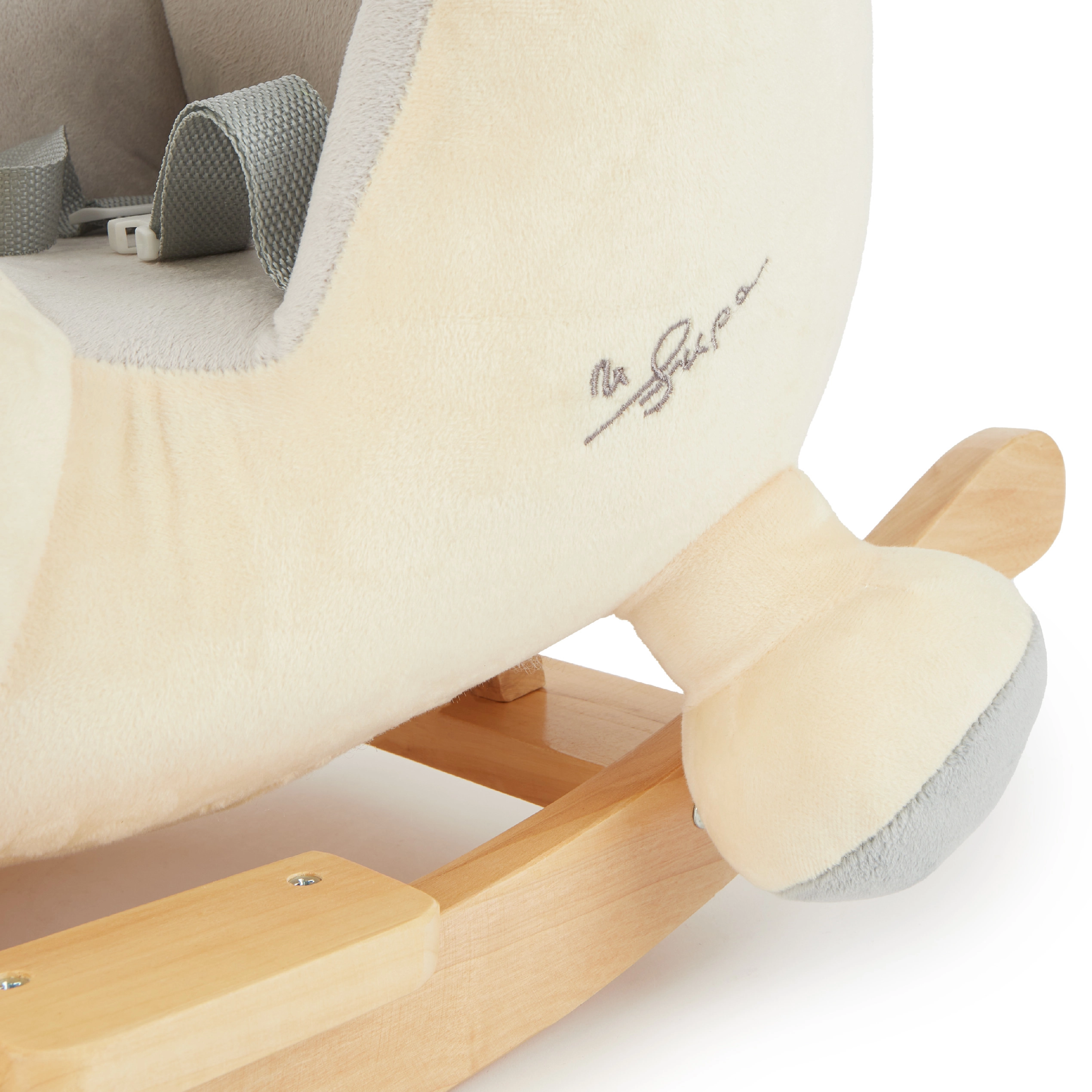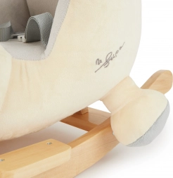 Masivna drewniana podstawa z ochroną przed przewróceniem oraz miękkie, komfortowo wyściełane siedzisko z pasem bezpieczeństwa zapewniają maksymalne bezpieczeństwo nawet dla najmłodszych dzieci. Delikatna pluszowa powierzchnia sprawi, że dzieci szybko pokochają swojego nowego przyjaciela.