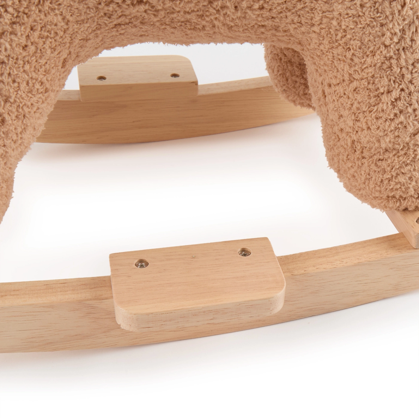 Wytrzymała, drewniana podstawa z gładko zaokrąglonymi płozami i wbudowaną ochroną przed wywróceniem zapewnia pewne i płynne bujanie.