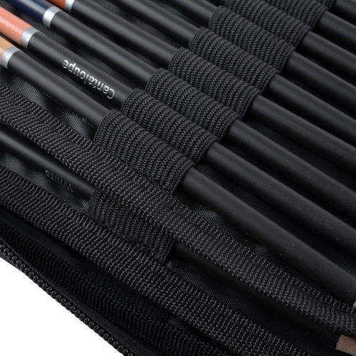 Wytrzymałe etui z gumowymi uchwytami utrzyma kredki w bezpieczeństwie i idealnym porządku w domu i w podróży.