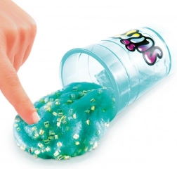 - Kompletny zestaw: 6 saszetek kolorowych slime’ów, 4 rodzaje ozdób, 3 kubeczki, szpatułka do mieszania