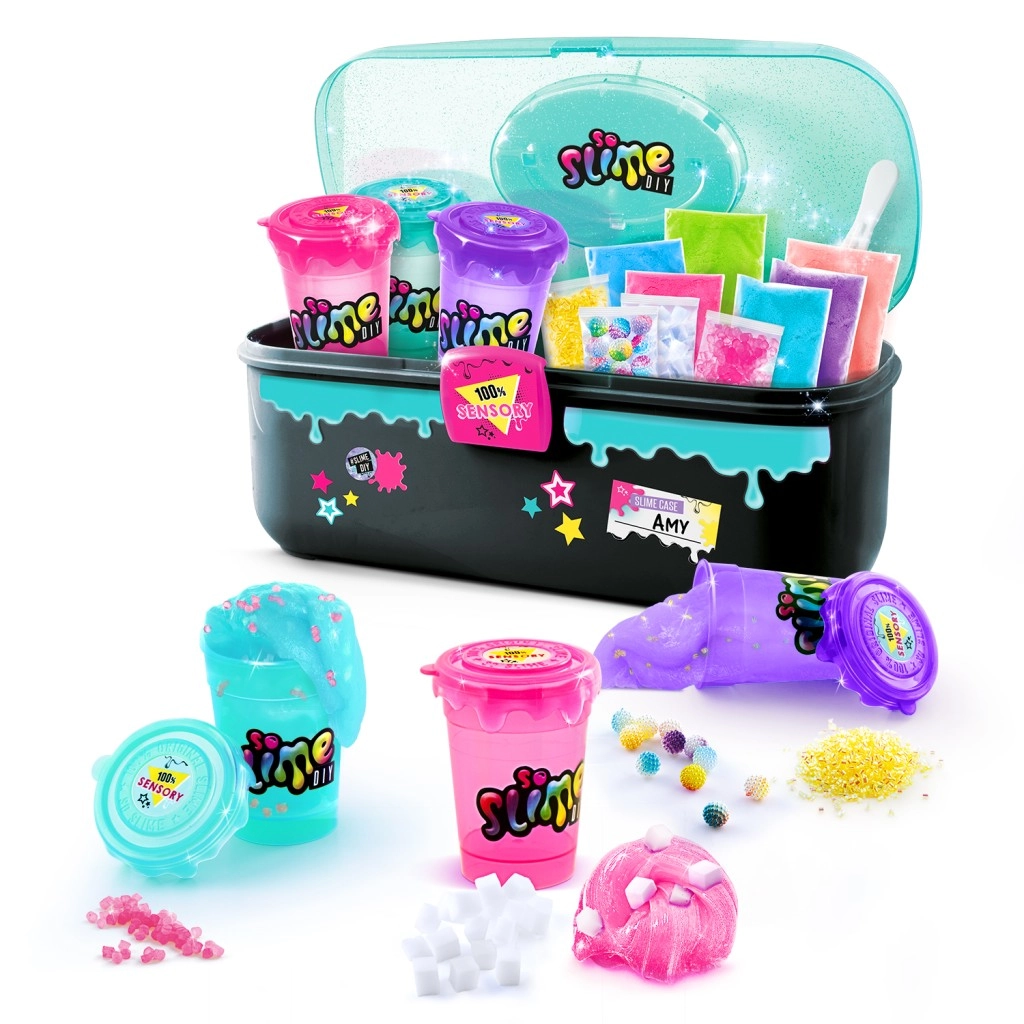 Kompaktowa walizka SO SLIME zawiera wszystko, czego dzieci potrzebują do natychmiastowego tworzenia barwnych i błyszczących slime’ów. W kilku prostych krokach przygotują oryginalne kombinacje kolorów i faktur, a następnie ozdobią je dołączonymi dekoracjami.