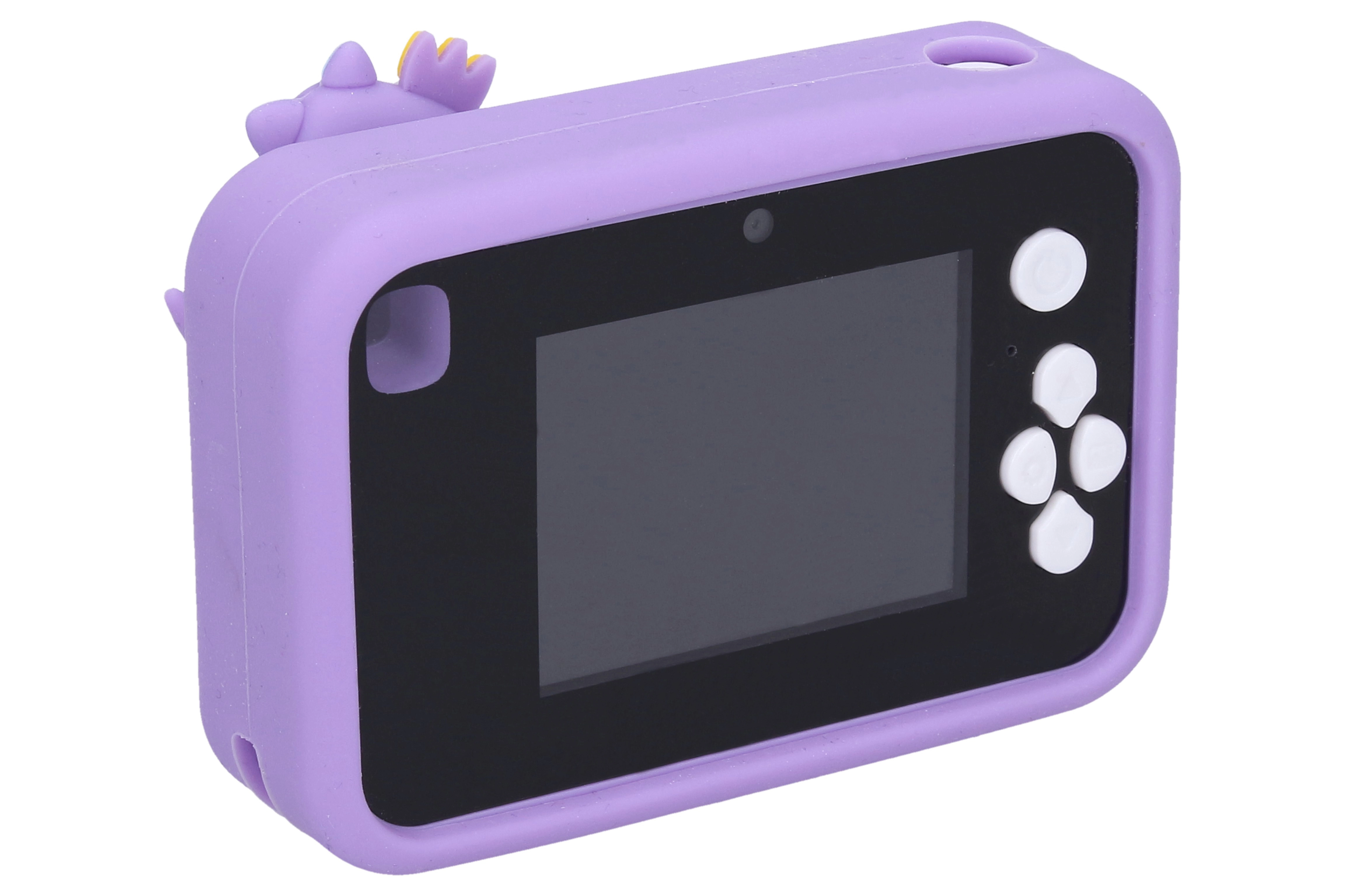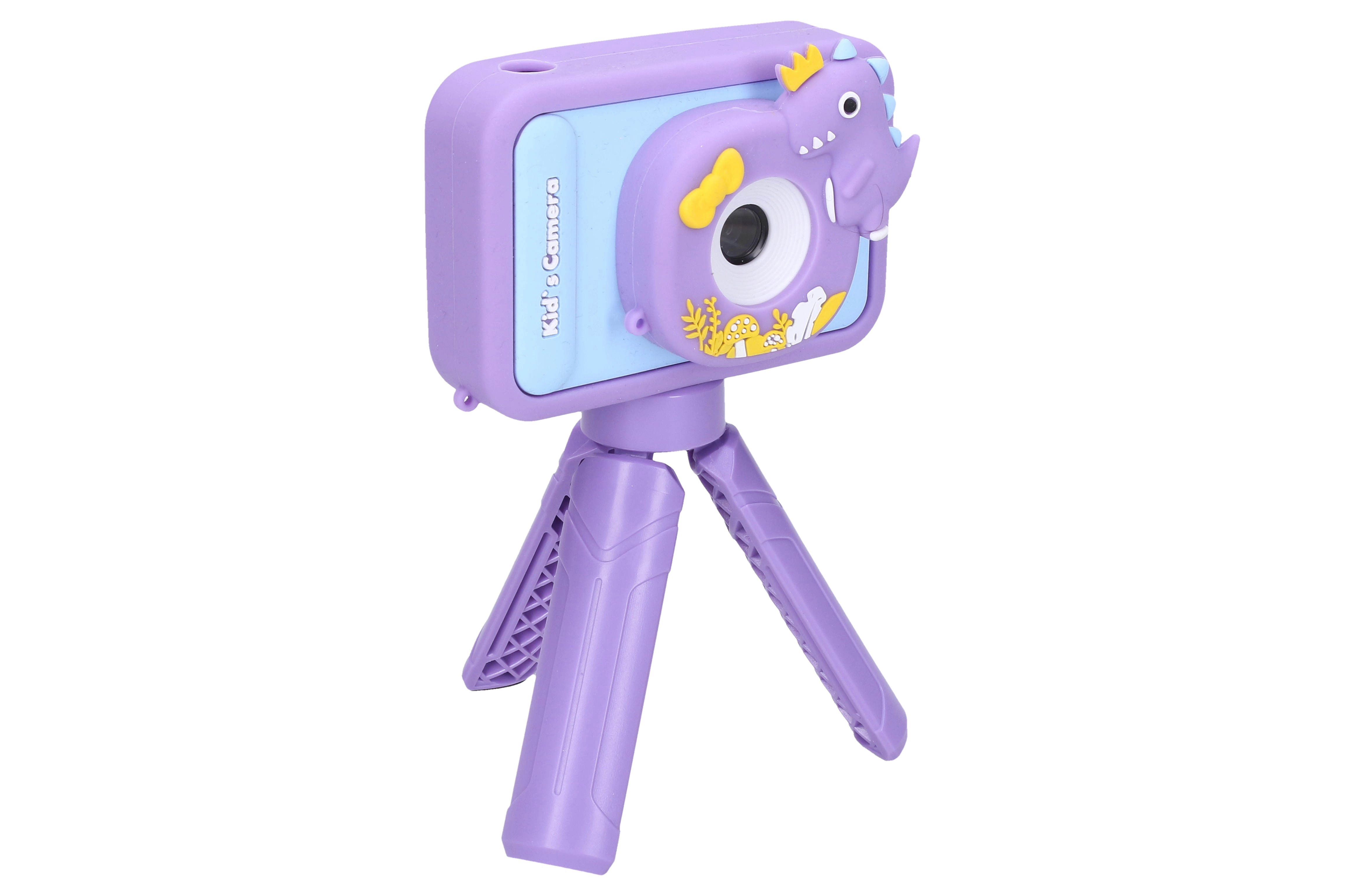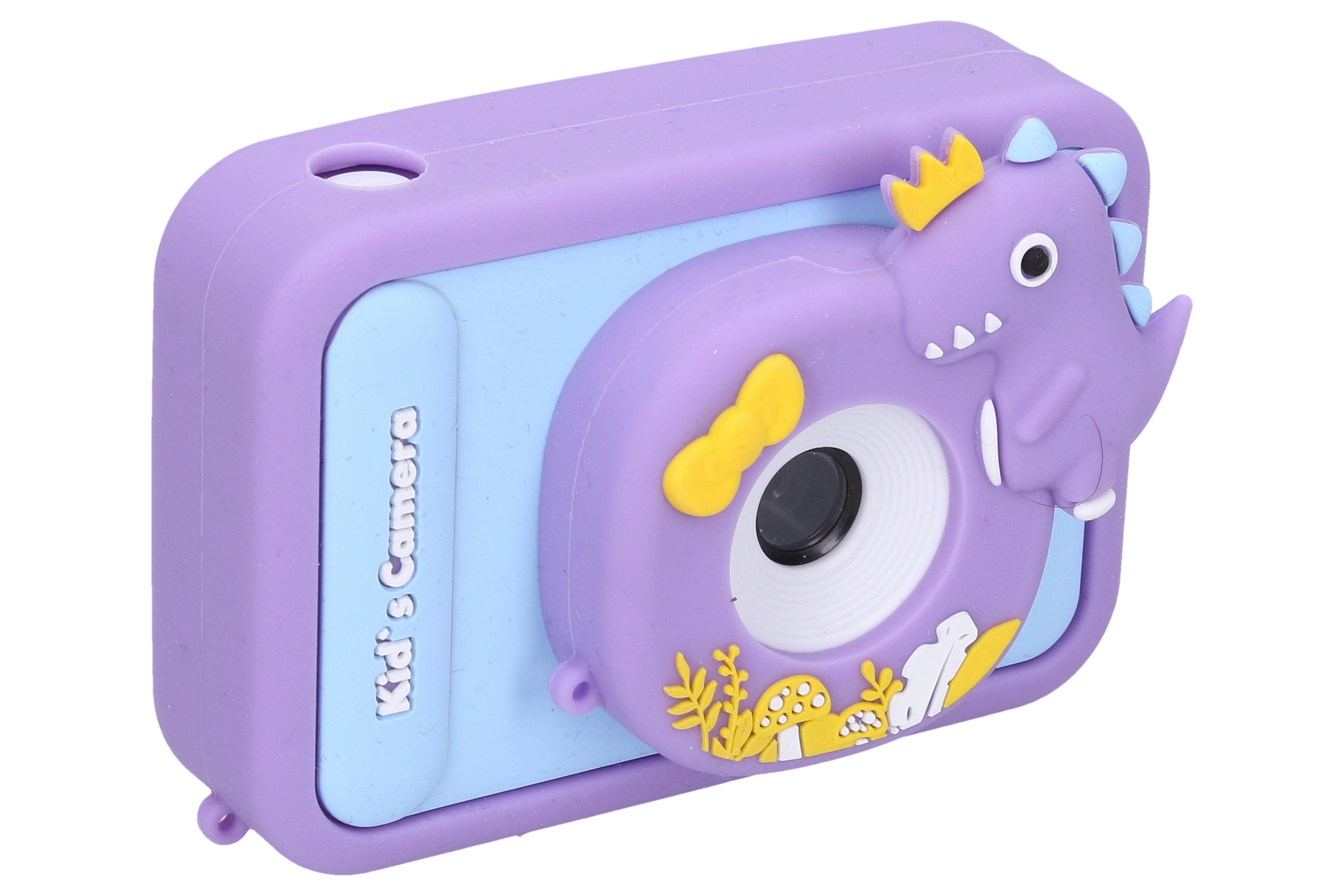 Łatwo i wesoło uchwyć dziecięce przygody dzięki kolorowemu aparatowi z motywem dinozaura. Oferuje zdjęcia 48 Mpx, wideo Full HD, wyświetlacz 2,4", kamerę do selfie, 4× zoom cyfrowy, zabawne filtry i ramki, a w zestawie znajduje się silikonowe etui, statyw, kabel USB‑C oraz pasek do bezpiecznego noszenia.