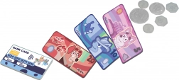 W komplecie znajduje się zestaw monet, banknotów oraz karta płatnicza, dzięki którym dzieci wypróbują płatności gotówką i bezgotówkowe.