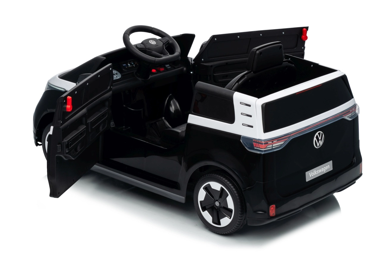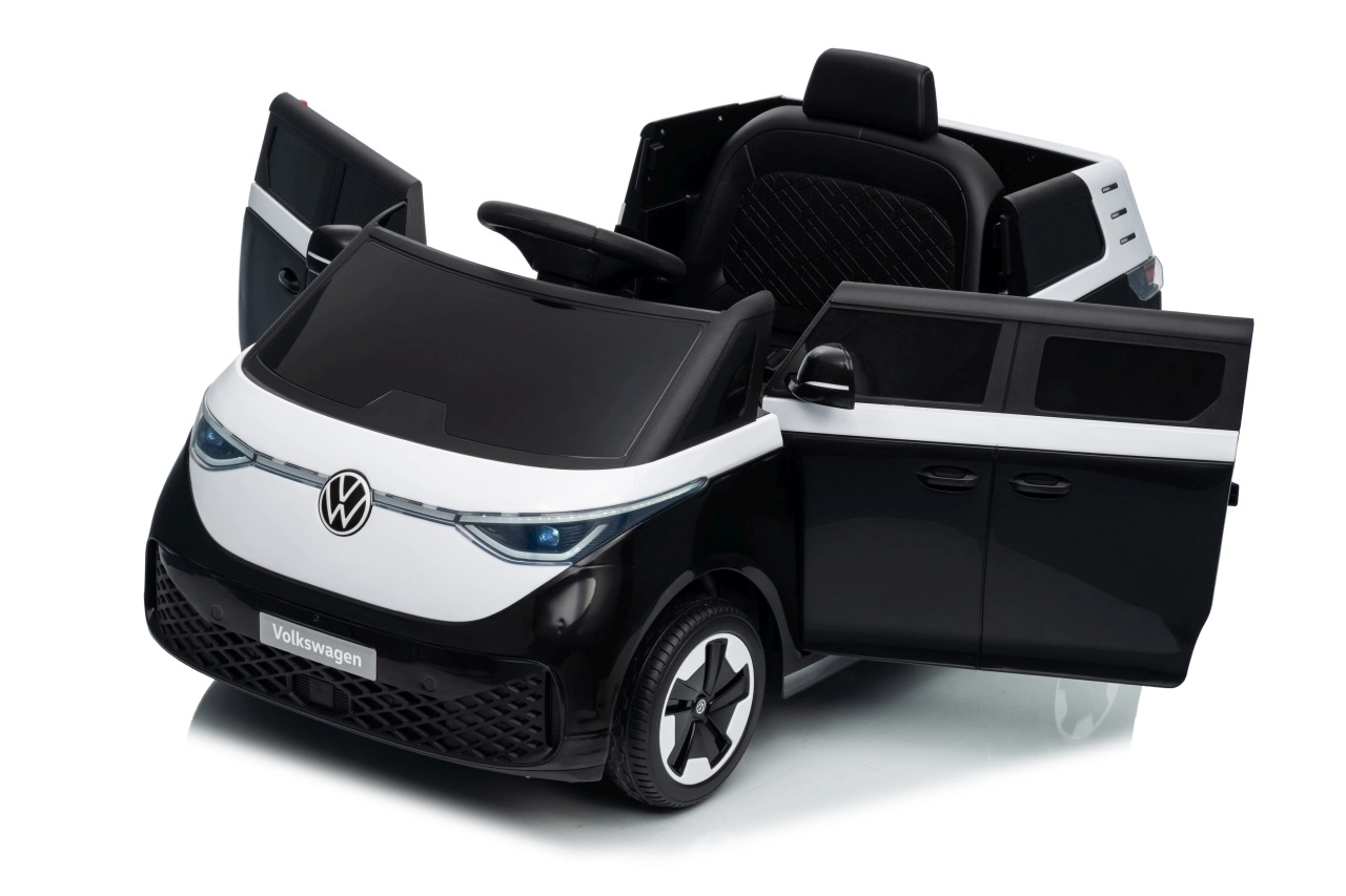 Elektryczny jeździk VOLKSWAGEN ID BUZZ łączy ikoniczny wygląd nowoczesnego vana w bezpiecznej wersji dla dzieci. Dwa silniki 45 W zasilane wydajną baterią 12 V 10 Ah gwarantują płynną jazdę do przodu i do tyłu z dwiema prędkościami. Dzięki płynnemu startowi dzieci nie szarpią przy ruszaniu i cieszą się komfortem siedziska z ekoskóry z pasami bezpieczeństwa.