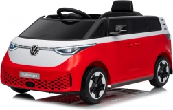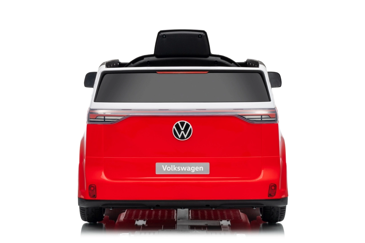 Stylowy dziecięcy elektryczny samochodzik inspirowany legendarnym vanem VOLKSWAGEN ID. BUZZ w czerwono-białej wersji. Oferuje mocne silniki 2×45 W, akumulator 12 V 10 Ah, wygodne siedzisko z ekoskóry z pasami oraz piankowe koła EVA dla cichej i komfortowej jazdy. Rodzice docenią zdalne sterowanie 2,4 GHz z bezpiecznym przyciskiem Stop, a dzieci lampy LED i panel audio z Bluetooth/USB/MP3.