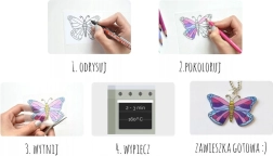 Ten kreatywny zestaw zamienia rysunki w trwałe, kolorowe i błyszczące ozdoby. Wystarczy odrysować motyw na matowej stronie specjalnej folii, pokolorować, wyciąć i krótko zapiec w piekarniku – folia zmniejszy się i utwardzi. W kilka minut masz gotowe osobiste dekoracje i prezenty.