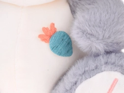 Specjalne giętkie uszka można formować w różne pozycje, co dodaje zabawy i rozwija małą motorykę oraz kreatywną wyobraźnię. Uroczy motyw marchewki na brzuszku podkreśla króliczy charakter zabawki i nadaje jej wyjątkowego uroku.