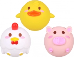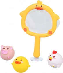 Siateczka z przyssawką + 3 gumowe zwierzątka (kaczka, świnka, kurka)