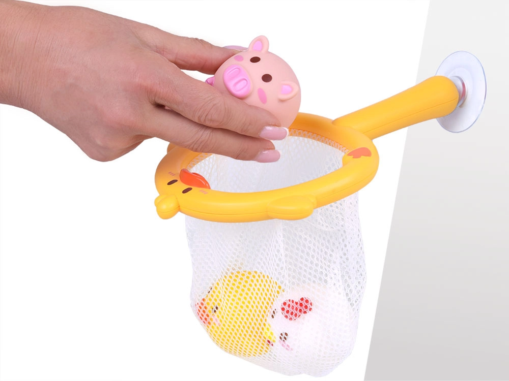 Siateczka w kształcie kaczuszki z przyssawką przylega do gładkich powierzchni. Dzieci mogą łowić zwierzątka, odkładać je i pozwolić im ocieknąć – porządek w wannie to pestka.