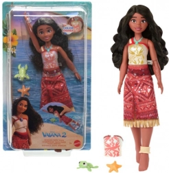 Lalka Vaiana inspirowana filmem Disney Vaiana 2 zaprasza dzieci do przygód na otwartym morzu. Jej górna część stroju zmienia kolor w kontakcie z ciepłą wodą, dzięki czemu możesz cieszyć się magiczną przemianą wciąż na nowo. Po naciśnięciu przycisku w talii nogi poruszają się i lalka wygląda, jakby pływała – idealna do zabawy w wodzie i poza nią.