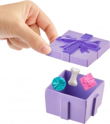 Otwórz fioletowy prezent i odkryj miniaturowe akcesoria – dodatki, które wzbogacą każdą scenkę i ucieszą małych odkrywców.