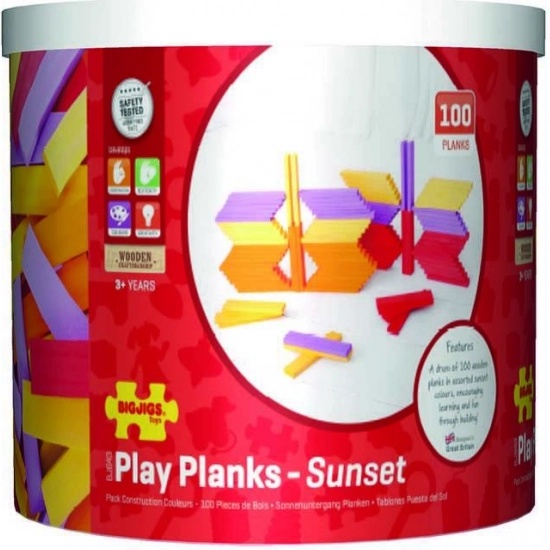 Ten kreatywny zestaw oferuje 100 starannie wykonanych drewnianych elementów, dzięki którym dzieci z łatwością tworzą oryginalne wzory, konstrukcje i historie inspirowane zachodem słońca. Dzięki różnym kształtom i kolorom zabawa wspiera wyobraźnię, koordynację oko–ręka oraz motorykę małą.