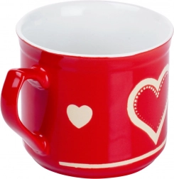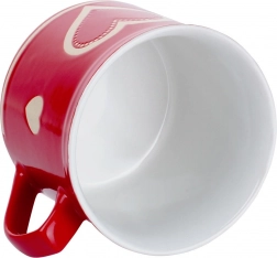 Ten pojemny kubek z wysokiej jakości ceramiki łączy praktyczność z uroczym wyglądem. Czerwone wykończenie z delikatnymi serduszkami wyróżni się w każdej kuchni, a dzięki pojemności 650 ml jest idealny na duże porcje herbaty, kawy, kakao lub innych gorących napojów.