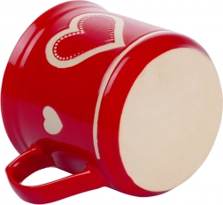 Czerwona glazura z kremowymi motywami serc doda Twojej kuchni przytulnego charakteru i sprawdzi się także jako prezent.