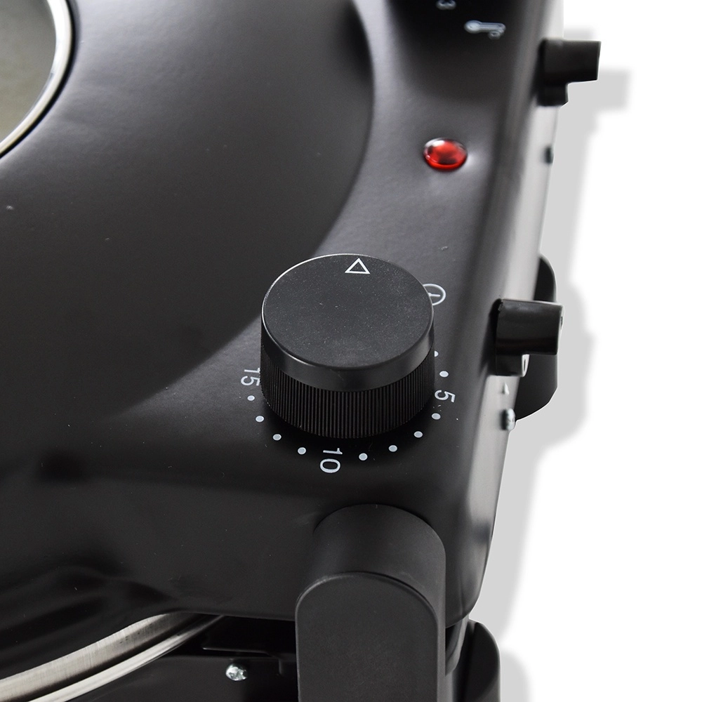 Pięć poziomów ustawień temperatury oraz zintegrowany 15‑minutowy timer dają pełną kontrolę nad pieczeniem. Piekarnik jest idealny nie tylko do pizzy, ale także do croissantów, ciasteczek, grzanek i innego szybkiego pieczywa – przy minimalnym zużyciu energii w porównaniu ze zwykłym piekarnikiem.