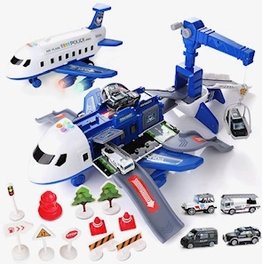 Duży rozkładany policyjny samolot zamienia się w parking do zabawy z dźwigiem, światłami i dźwiękami. W zestawie 4 metalowe pojazdy, które pobudzą wyobraźnię i zachęcą do dynamicznej zabawy. Idealny prezent dla małych miłośników policji i techniki.