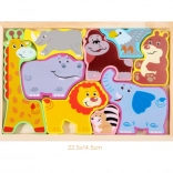 Drewniana układanka ze zwierzętami z zoo to świetny wybór na pierwsze puzzle. Dzięki solidnemu drewnu i gładkim krawędziom jest bezpieczna i przyjemna w dotyku. Elementy są zaprojektowane dla małych dziecięcych rąk i pomagają rozwijać koordynację oko–ręka, małą motorykę oraz rozpoznawanie kształtów i zwierząt.