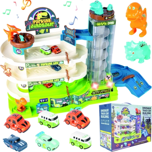 Wejdź do pełnego przygód prehistorycznego świata z parkingiem inspirowanym dinozaurami. Dzięki trzem poziomom i zabawnej stylistyce dzieci spędzą długie godziny na świetnej zabawie, a efekty dźwiękowe spotęgują realizm rozgrywki. Zestaw doskonale sprawdzi się w pokoju dziecięcym i łatwo się składa.