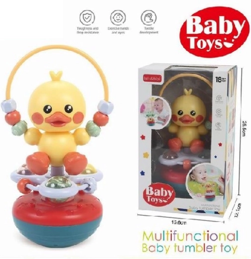 Ta wesoła kaczuszka w stylu „wańka-wstańka” (czyli kołysząca się zabawka, która zawsze się podnosi) została zaprojektowana dla małych dziecięcych rączek. Po delikatnym popchnięciu kołysze się i wraca do środka, wzbudzając ciekawość i wspierając naturalną chęć odkrywania świata ruchu.