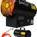 Wydajna nagrzewnica gazowa MalTec o mocy 25 kW szybko ogrzeje warsztaty, garaże lub place budowy. Oferuje elektroniczne zapłony, termostat z czujnikiem temperatury, regulację temperatury oraz zabezpieczenie przed przegrzaniem. W zestawie znajduje się wąż 1,5 m z reduktorem do natychmiastowego użycia.